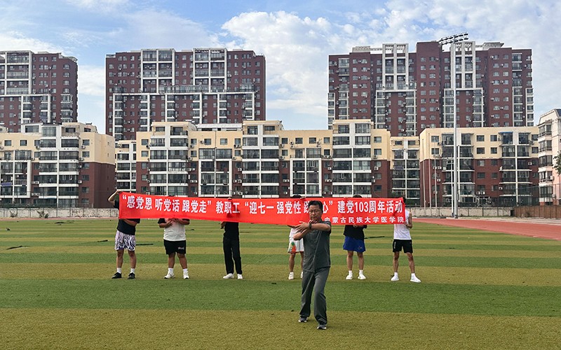 为增进教职工之间的沟通交流,提高学院凝聚力、向心力,提振信心,在“七一”建党103周年之际,6月28日下午,医学院在北区操场举办“感党恩 听党话 跟党走”——“迎七一 强党性 践初心”趣味运动会。医学院党委书记裴云涌、分工会主席毕伏龙及教职工40余人参加活动。