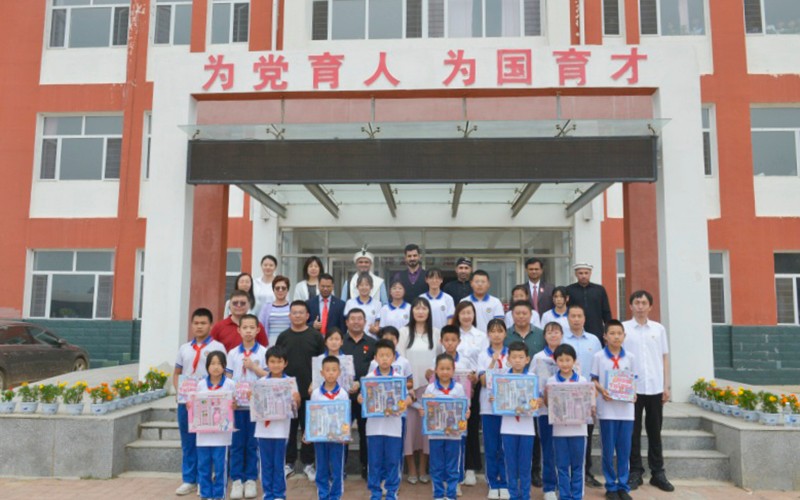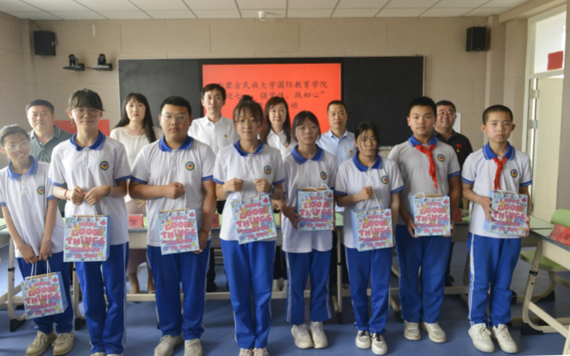 杨丽华一行走进库伦旗水泉乡学校学生课堂,开展“中外师生同上一堂课”课间实践活动,来自尼泊尔和巴基斯坦的来华留学生与学生进行深入互动交流。学校领导班子为20名学生发放助学文具。