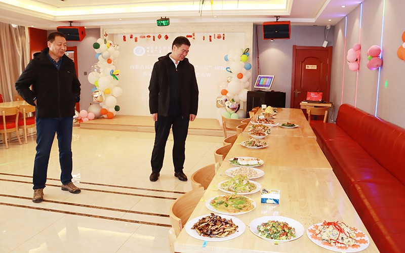 在第115个“三八”国际劳动妇女节来临之际,为丰富女教职工业余文化生活,增进教职工间交流合作,3月5日,学校以“建功新时代 巾帼绽芳华”为主题举办教职工厨艺大赛。校党委副书记王烨辉出席活动,全校30个分工会的女教职工代表积极参赛。工会主席刘巴图主持比赛。