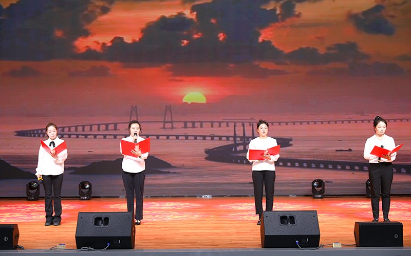 展演中,教职工通过诗朗诵、演讲、影视配音等多元形式,以饱满的情感、清晰的发音和精准的节奏,生动诠释了作品中所蕴含的家国情怀与奋进力量。演出现场时而激昂澎湃,点燃全场热情;时而温情细腻,引起广泛共鸣。不仅展现出扎实的普通话功底,更让现场师生深刻感受到中华语言文化的深厚魅力与博大精深。