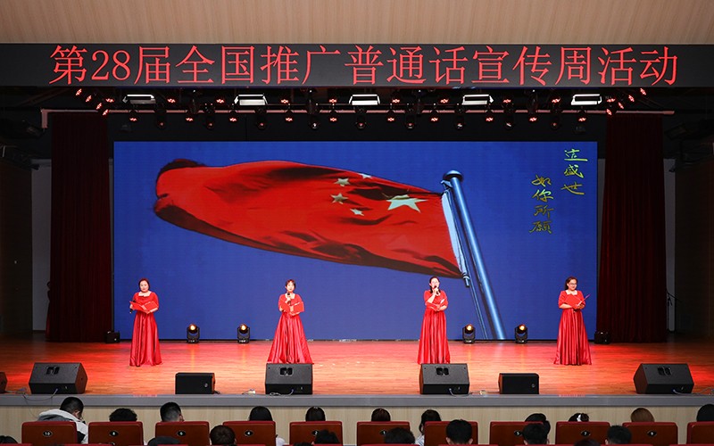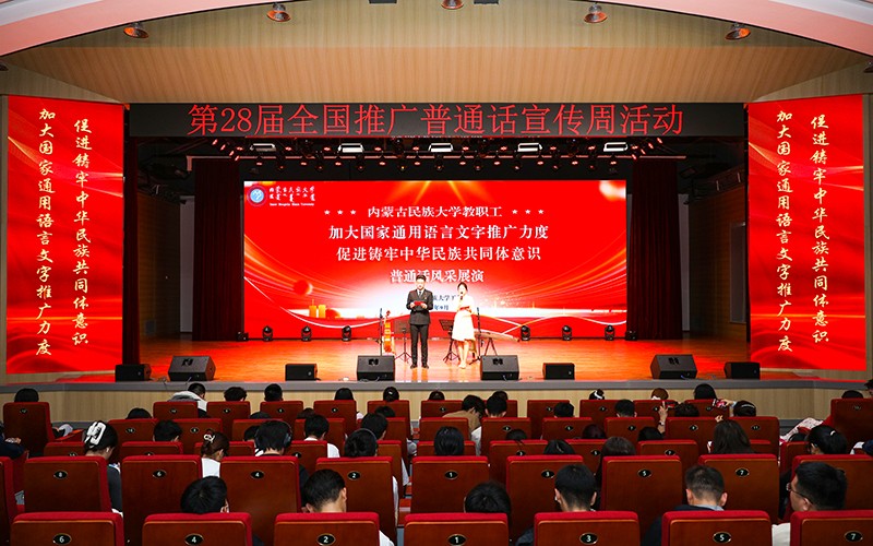 为积极响应全国推广普通话宣传周号召,进一步提升我校师生普通话水平,以语言为桥,增进文化认同、铸牢中华民族共同体意识,9月18日,校工会以“加大国家通用语言文字推广力度,促进铸牢中华民族共同体意识”为主题,成功举办教职工普通话风采展演活动,300余名师生到场观看。