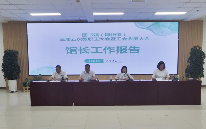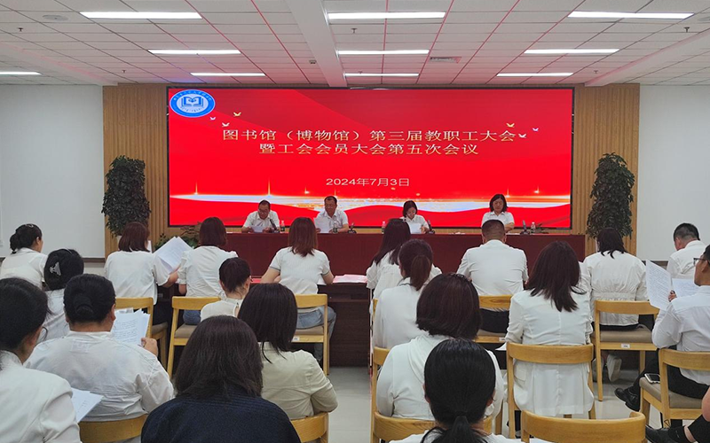 7月3日上午,图书馆(博物馆)第三届教职工大会暨工会会员大会第五次会议在图书馆一楼明德多功能厅召开。图书馆领导班子成员及全体职工参加了会议。会议由图书馆工会主席玉海主持。